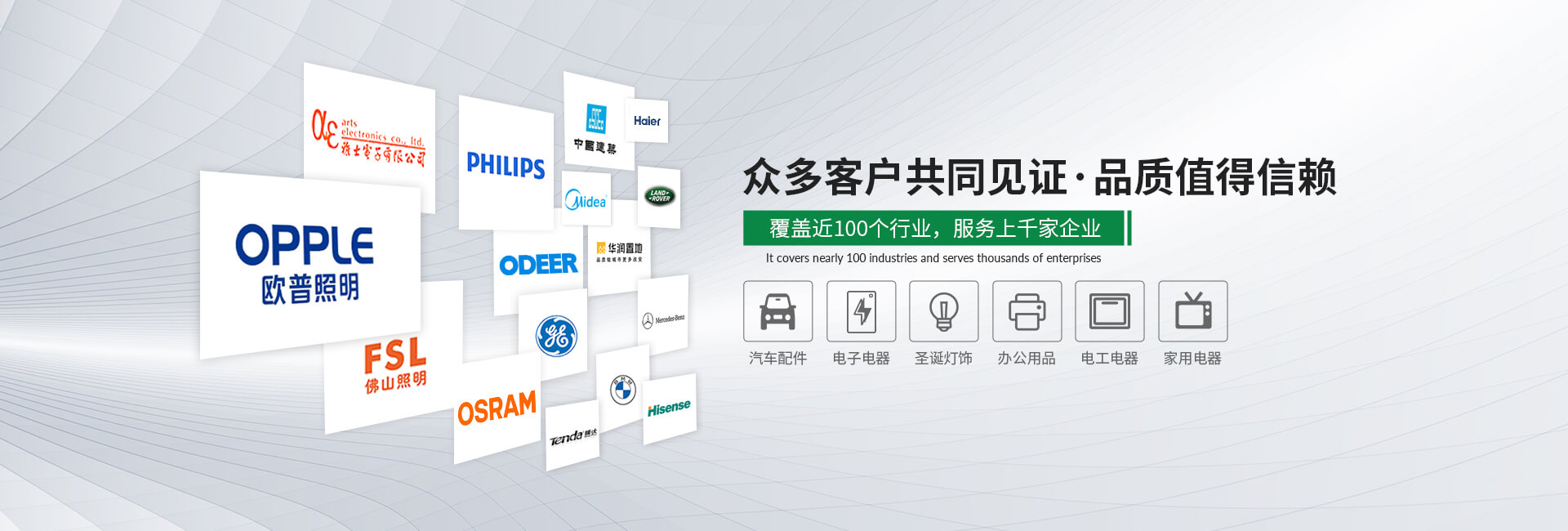 產(chǎn)品廣泛應(yīng)用于燈飾、家電、OA設(shè)備、IT、通訊、電子、電工電器、建材、電線電纜等多種行業(yè)